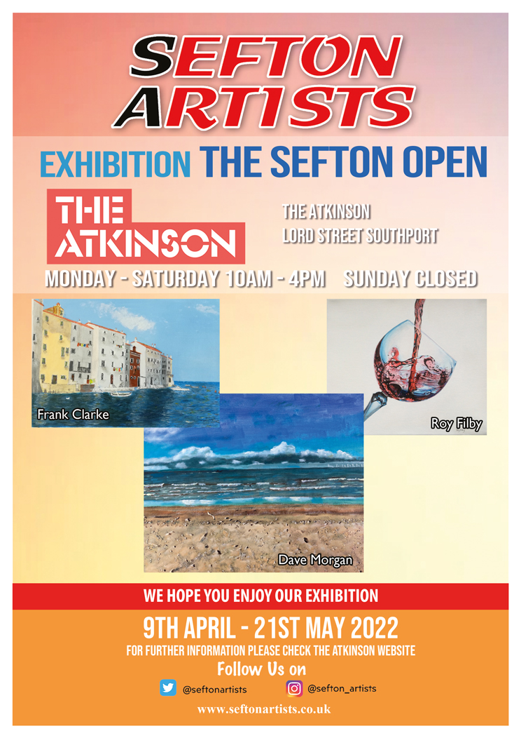 Sefton Artists will be exhibiting in the Sefton Open at the Atkinson from Saturday 9th April till Saturday 21st May.