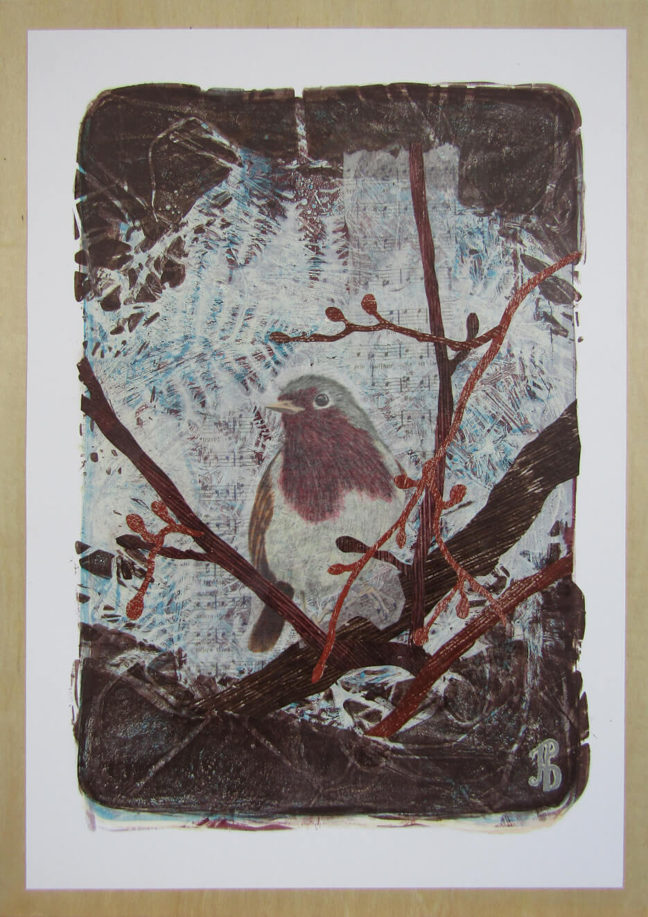 - Bird Song #1, Jennifer Puckett, Monoprint & Collage, £100, 29.5×42 cm